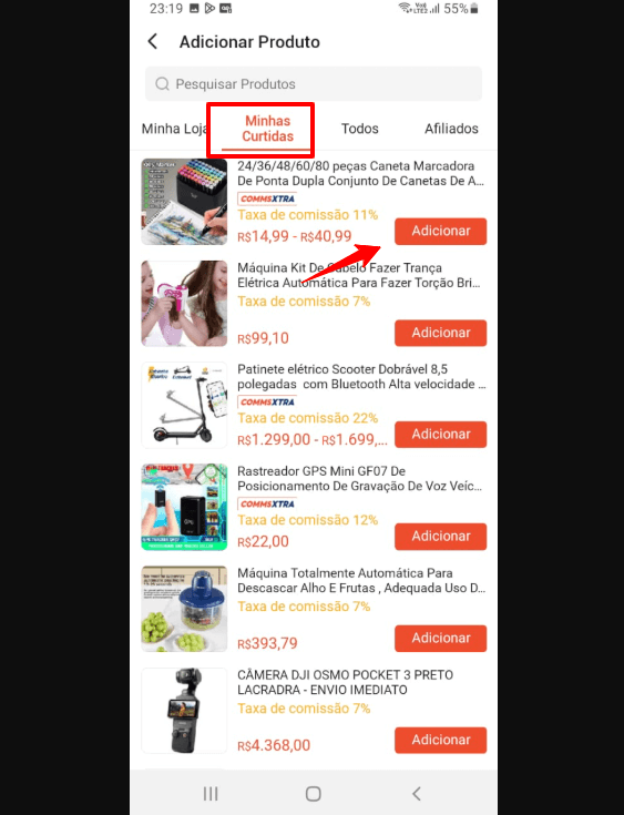 2. Favoritar produto que será inserido no vídeo